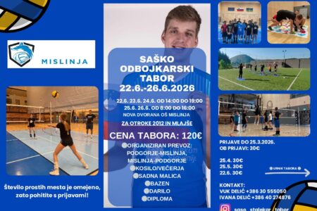 K vpisu v odbojkarsko šolo vabimo vsa dekleta in fante od 2 do 9 razreda OŠ. Vpis bo potekal vsak ponedeljek in sredo v septembru med 15:00 in 18:00 uro v Centru za zdravje in šport Mislinja pri trenerjih selekcij. Več informacij na : www.korvolley.si ali pri trenerjih selekcij: David: 051 243 132, Tomo 040 479 621 ali…